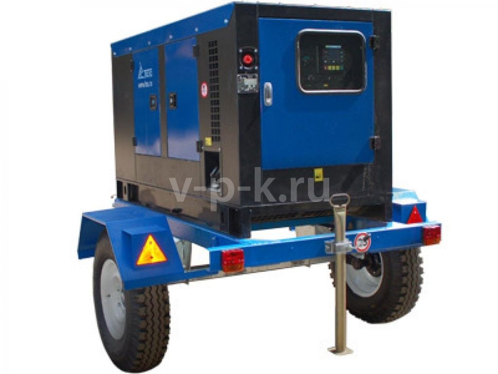 Дизельный генератор ТСС АД-60С-Т400-1РКМ5 в шумозащитном кожухе на прицепе с АВР 10208: характеристики